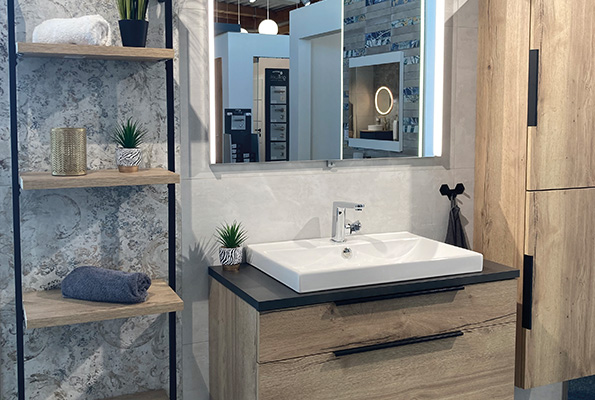 Mit den Ausstellungsräumen in unserer Sanitärabteilung, bieten wir Ihnen aufeinander abgestimmte Alternativen als weitere Entscheidungshilfen an.
